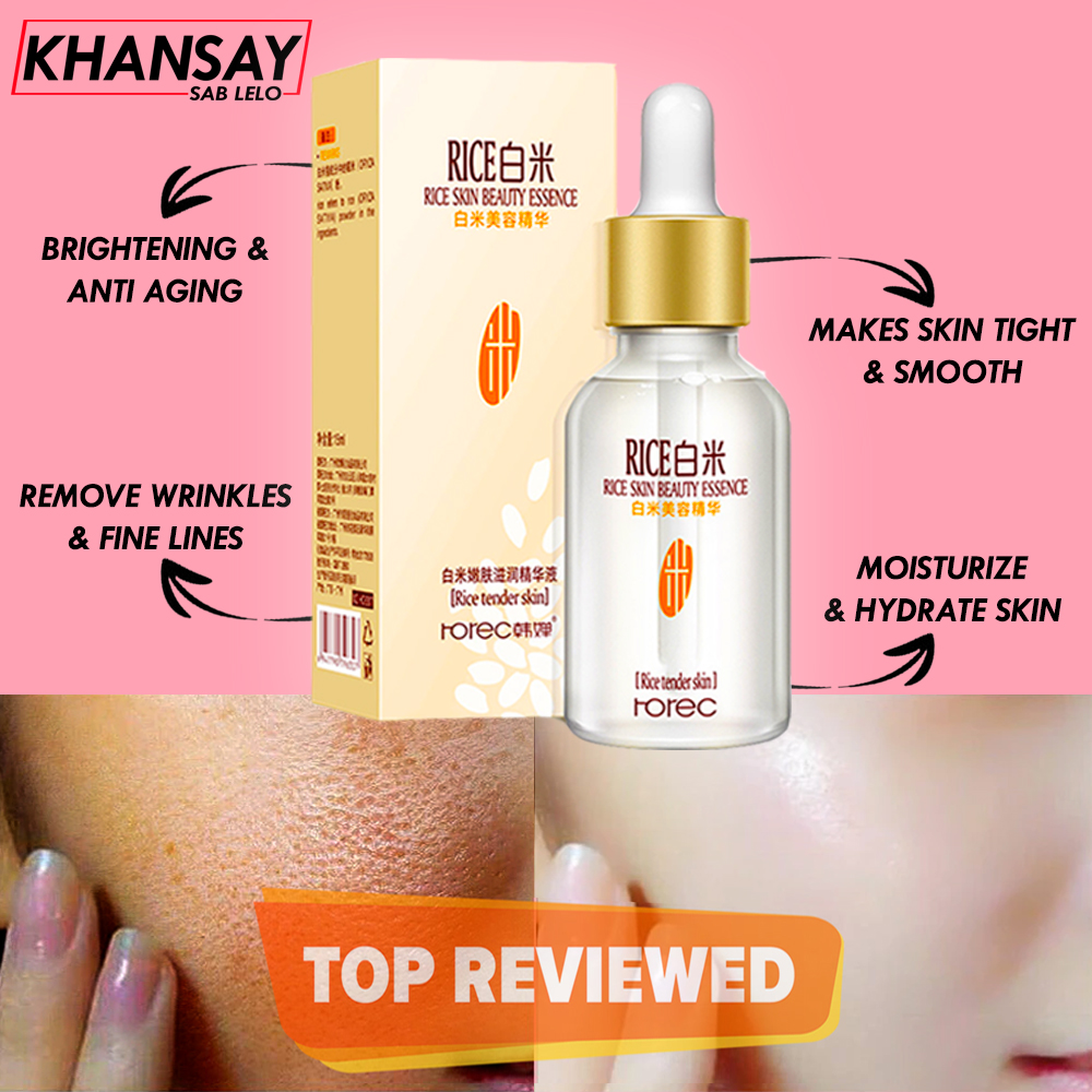 White rice whitening face serum/primer is compatible to use for all types of skins. White rice serum 15ml pack is also called anti-aging or skin face serum which enhance your skin cells and bring them to together which ultimately make your old skin look younger and wrinkle free.